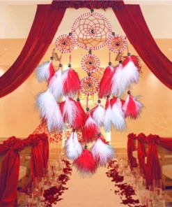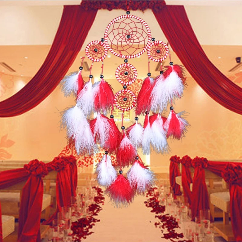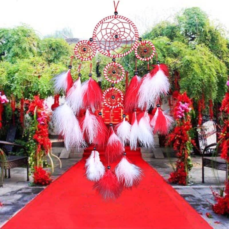 Parfait comme ornement pour la maison ou la voiture, il intègre des plumes rouge et blanc ainsi que des perles noires, apportant une touche de couleur et de spiritualité à votre espace.