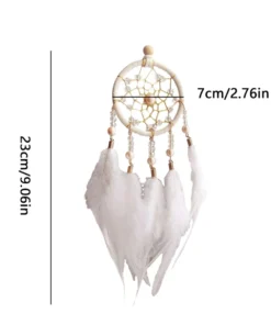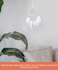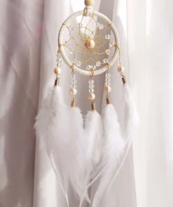 Ce mini attrape rêve blanc est une véritable ode à la tranquillité. Ses plumes légères, semblables à des caresses de douceur, et sa perle centrale, scintillante comme une goutte de rosée au lever du jour, en font un objet d’une beauté subtile et apaisante. Chaque détail a été pensé pour capturer l’essence de la sérénité, transformant cet attrape rêve en un véritable symbole de protection et de bien-être.